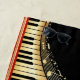 Teclado de oro moderno, notas y trébol de colores con rayas rojas sobre fondo negro. Monograma opcional