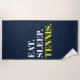 Ya sea que esté en la playa, tumbado en el césped o viendo un partido de tenis desde las gradas, manténgase cómodo y haga una declaración mientras lleva su llamativa toalla de playa. Esta cómoda toalla de playa, muy absorbente, es ideal para el hogar, para llevar en el campo, los días soleados en la playa o relajarse en la piscina. Representar tu amor por el tenis con este diseño de comer.dormir.tenis. Esta es la toalla ideal para recuperar el amor por el tenis en tierra o mar.