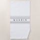 Toalla De Playa Texto Personalizado y franjas modernas | Blanco y