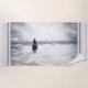 Tiempos tormentosos: un jinete solitario en la playa con un mar tormentoso, en blanco y negro