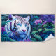 tigre blanco de ojos azules en hojas tropicales y flores moradas AI Art de minx267