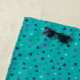 This beach towel features hand-drawn tiny hearts in shades of purple, blue and teal on turquoise.