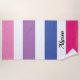 Esta elegante toalla de playa está decorada con audaces rayas rosas, violetas, azules y blancas con tipografía negra. Personalizar cambiando el nombre o convirtiéndolo en un monograma.