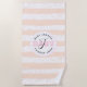 Toalla De Playa Tiras monogramadas rosa y blanca