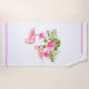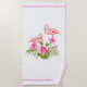 Esta toalla de playa se muestra en una impresión tropical de flamencos y flores.