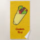 Icono de ajuste de tortilla. Iconos de contorno de comida basura fondo de patrón amarillo. Texto personalizado.