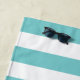Celebra tu fin de semana de soltera, escapada o fiesta con estas toallas de playa personalizados únicas. El diseño personalizado presenta vibrantes rayas verde azuladas y blancas color turquesa con el "último vuelo antes del anillo" que rodea un ilustracion de anillo de diamantes. Personaliza con el nombre, año y destino de la novia.