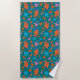 Una divertida toalla de playa, con un patrón de peces Naranjas brillantes en un fondo verde profundo y azul, de un caprichoso collage de papel pintado a mano de Judy Adamson. Este patrón, que forma parte de la colección "Pescado en el mar" de Posh & Painterly, se puede personalizar fácilmente cambiando la dirección o la escala de la baldosa patrón para un aspecto completamente diferente.