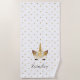 Horno de oro, ojos y puntos con flores doradas y blancas toalla de playa personalizada unicornio