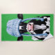 El ilustracion tiene una vaca blanca y negra que lleva un gorra de invierno azul con correas y cuerdas trenzadas. La imagen combina elementos de la vida rural con un giro humorístico, representando a la vaca en un estilo inesperado, lo que añade un encanto único a la imagen.