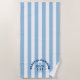 La toalla de playa Vaquera Costera La Franja de la Cabaña Azul de The Beach Club es perfecta para su despedida de soltera en la playa o viaje de chicas... franjas de cabana azul claro con letras "The Beach Club" en azul denim. Personalice con los detalles de su viaje... año y destino de la playa. Accesorios a juego en la Colección de The Beach Club de Vaquera Costera.