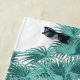 Las frondas verdes verde azuladas tropicales hermosas de las hojas de la palmera están en esta toalla de playa de las islas.