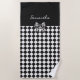 Elija esta toalla Harlequin Mad Hatter Beach para chequeros negros y blancos con una linda coqueta de chapa de búfalo para sus futuros días de playa o piscina o como regalo para un amigo o miembro de la familia.