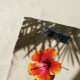 Sienta las vibraciones tropicales con esta colorida flor de Hibiscus y sombras de palmeras colgadas en la arena. Personalice esta toalla de arena con un nombre. Esta imagen es la fotografía original de la playa de JLW_PHOTOGRAPHY.