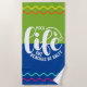 La divertida y colorida toalla de playa muestra un gráfico de "La vida de la piscina porque las playas son saladas" con letras blancas de moda. COINCIDIENDO elementos y más colores en nuestra colección.