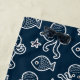 Esta toalla de playa se muestra en una bonita huella de vida marina. Personalizar azul de la marina de color este artículo o compra tal como está.