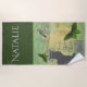 Toalla de playa de bonito con collage de color verde / oro / negro con mariposas, ephemera y silueta de gatos del famoso poster de arte de Le Chat Noir, un local de entretenimiento del siglo XIX, en el bohemio distrito de Montmartre de París - personalizable con nombre o monograma