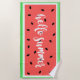 Este divertido diseño de toallas de playa presenta los típicos colores de la sandía en el borde y el fondo salpicado de forma liberal con semillas negras. Se proporciona una caligrafía elegante de "hola verano", que puede eliminarse si se prefiere. Busque ID407 para ver otros productos con este diseño.