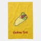 ilustracion personalizado de la envoltura de sándwich de tortilla. Iconos de contorno de comida basura fondo de patrón amarillo. Texto personalizado.