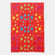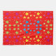 Toalla de té con estrellas de colores. El fondo rojo brillante se puede cambiar a cualquier color