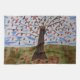 El verano se ha desvanecido en el otoño y las hojas han cambiado de color en el árbol y están cayendo para formar pilas en el pasto de abajo. Pintado en vivos tonos pastel de marrón, rojo, dorado, ocre y naranja con un fondo de cielo azul, esta es una llamativa acuarela original de árbol de otoño que le traerá los cálidos y ricos colores de la caída.