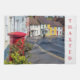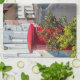 Una hermosa vista de las casas coloridas del pueblo de Thaxted en Essex, en Inglaterra, impresa en una toalla de té de recuerdo.