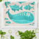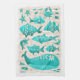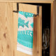Pescado divertido, ballena, cangrejos y pez estrella en el agua y colores verde azulados con fondo de arena. El acento perfecto para su cocina costera o casa de playa o entretenimiento.