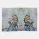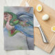 Agradable dibujo de la acuarela de rana verde y marrón del verano pasado. Dibujo ilustrativo, hermosa toalla.