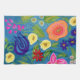 Flores tiradas multicolores sobre un fondo azul añaden un detalle llamativo y colorido a tu cocina. Pintado en gouache y acrílico.