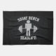 ¡Posición en cuclillas, banco, Deadlift! Un hombre con una toalla del gimnasio del levantamiento de pesas del barbell. Un regalo perfecto para el asistente ávido del gimnasio.