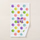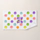 Toalla artística de deportes de tenis con un patrón colorido de pelotas de tenis. Para el personalizar, edite el texto para añadir el nombre y el monograma inicial.