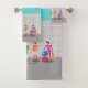 Usted es invitado al evento social del año con este diseño de toallas Fiesta de la Palm Springs Stewardess. Únete a estas tres veteranas aeromozas de las aerolíneas rivales mientras se registran en su kitschy hotel en bloques de brisa de los años 60. Uno de los fabulosos y coloridos botones con un retro uniforme rosado caliente sostiene la puerta del naranja mientras que el otro lucha con el equipaje de las mujeres. Las palmeras verde azuladas se desprenden de un cielo increíblemente turquesa mientras un barco transbordador vuela por encima. Este diseño te hará decir: "¡En tu marca, jet set, ve!"