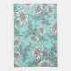 Azul verde azulado de la turquesa moderna y elegante, toalla de cocina clásica gris y blanca del modelo de flores del vintage, personalizable con su propio texto o foto, una adición única y elegante a su decoración de la cocina.