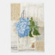 Una imagen hermosa del vintage de un hydrangea azul se fija en un collage del fondo del vintage parisiense y las Ephemeras francesas, incluyendo una vieja factura, acusan recibo, letra manuscrita, el manuscrito manuscrito de señora Bovary, tipografía preciosa y los viejos sellos. Una toalla de cocina "ridículo bonita". Collage de Digitaces del artista Anita Barnard. Una versión con un hydrangea rosado está también disponible. Busque las almohadas de tiro y los placemats a juego.