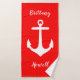 Toalla de baño con el nombre de guión personalizado de la marca roja y blanca. ¡Simplemente edita texto para personalizar!
