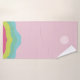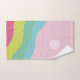 Conjuntos de toallas de baño modernas y de moda con monograma personalizado, arcoíris. Personalice toallas de cocina, mano y baño con iniciales, nombre, nombre, monograma, logotipo. Conjuntos de toallas de baño modernas abstractas rosadas y lindas para mujeres, madres, abuelas, diseñadoras de hogar, desayuno y cama, decoración del hogar y baño. Toallas de olas azules verdes amarillas rosadas para cumpleaños, día de la madre, Navidad,
