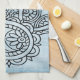 Añada un toque étnico elegante a su cocina con esta útil toalla de Mehndi Motif con un intrincado diseño de henna india sobre un fondo de aflicción azul. Añade texto personalizado, como tu nombre, a este diseño étnico para darle un toque personal.