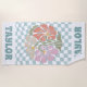 Color y estilo de letra multicolor: toalla de playa personalizada con nombre, fondo retro a cuadros y flores. ¡personalizar todos los colores que quieras! ¡Idea de Guay para regalo de dama de honor!