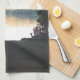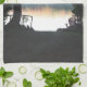 Cocina casera de diseño o toalla de baño. Paisaje natural de agua y árboles.