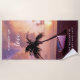 Una bonita toalla romántica con una imagen de puesta de sol tropical en la playa. Hermoso para cualquiera o cualquier ocasión y mostrado aquí como un regalo o favor boda para los invitados en una boda de playa o destino.