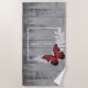Disfrute de su día en la playa o junto a la piscina con una toalla de playa personalizada de estilo rústico estilo mariposa roja. El diseño de las toallas incluye una mariposa vibrante que descansa sobre un delicado follaje con un espacio para añadir tu nombre a un fondo rústico de madera. Artículos de regalo adicionales disponibles con este diseño así como una variedad de colores.