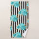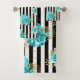 Toalla Set Aqua Blue Floral Black Vert. Rayos