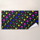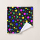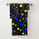 Estas divertidas toallas de baño están decoradas con círculos en un motín de coloridos puntos de polka de globos de globo: amarillo, verde, turquesa, azul, rojo, naranja y rosa. Personalizar fácilmente el fondo negro sobre cualquier toalla o toalla de diferente tamaño según el color que prefieras.