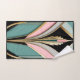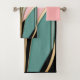 El conjunto de toallas de baño incluye una toalla de baño gigantesca, una toalla de mano de gran tamaño y un paño de lavado de buen tamaño. He añadido un diseño Art Deco a este conjunto de encantadores colores verde menta rosa y oro y negro. Este sería un bonito conjunto para tener en su cuarto de baño o en su cuarto de baño.