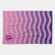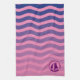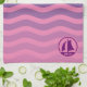 Añade tu monograma a esta toalla de cocina náutica con velero morado sobre olas azules y rosas. Perfecto para picnics y cenas de pescado.