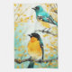 Este diseño presenta dos pájaros coloridos sentados en una rama de árbol sobre un fondo claro. El diseño está inspirado en la belleza de la naturaleza y en la alegría de la primavera. Los pájaros están pintados con una acuarela digital que les da un aspecto suave y realista. La rama tiene delicadas hojas amarillas que le dan un toque de frescura y elegancia.