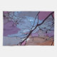 Esta hermosa toalla de cocina de arte fina muestra un patrón abstracto de ramas negras contra un cielo al atardecer con colores arcoiris de color violeta, azul, blanco, rosa, naranja, gris y magenta.