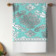Toallas de cocina de damasco azul turquesa chic