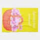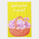 toalla de cocina azul con una cesta de flores púrpura y rosa justo a tiempo para la primavera