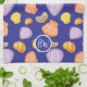Estilo su cocina con esta toalla de cocina con un colorido patrón de conchas rojas, amarillas y violetas en acuarela sobre un fondo azul. Puedes llevar la alegría del verano a tu casa con este tema marino o regalarla como regalo personalizado a los amigos amantes de la playa. Puede cambiar el monograma a su color y fuente preferidos, así como el color de fondo del patrón.